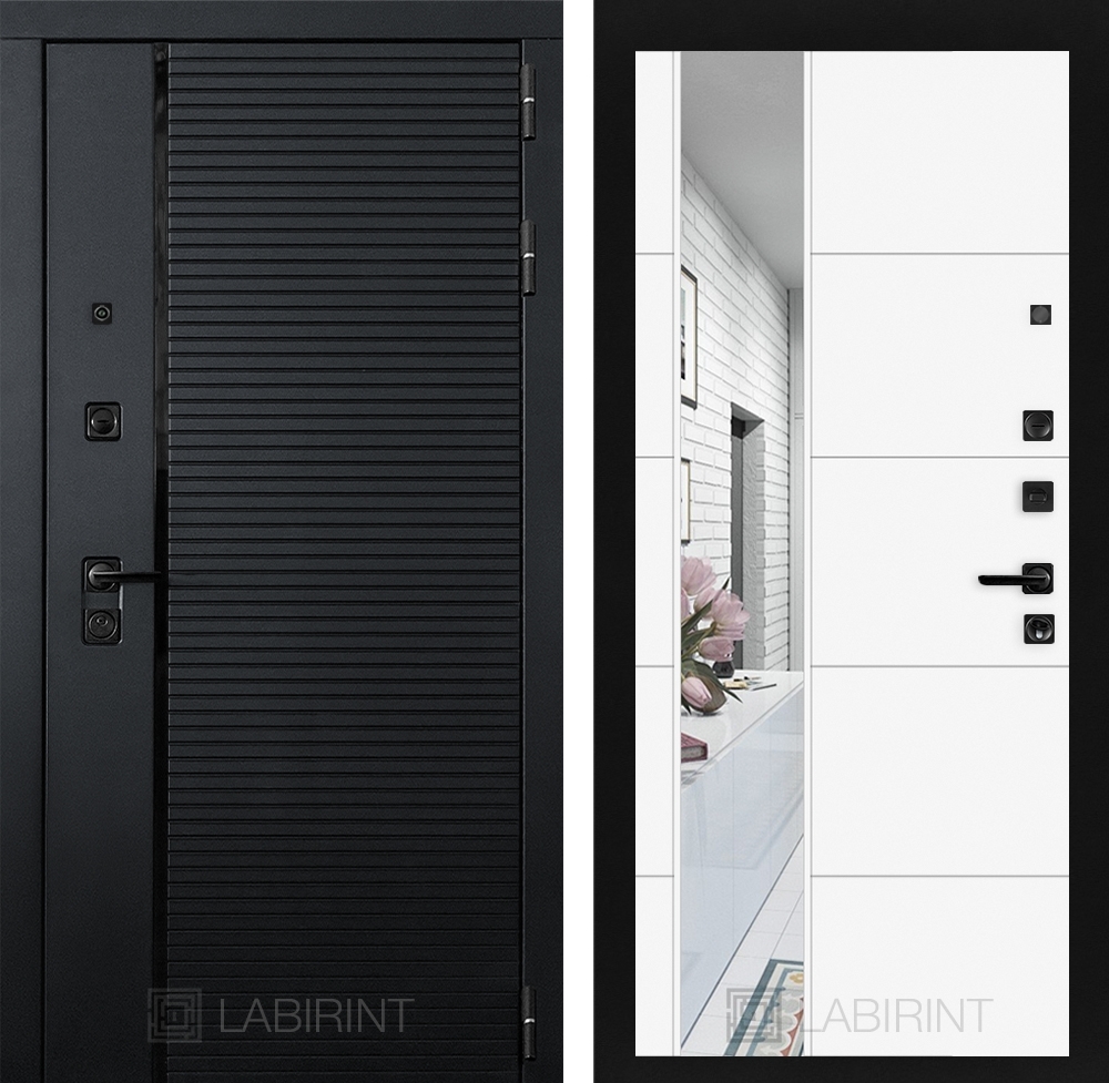 Входная стальная дверь Лабиринт PIANO с зеркалом 19 - Белый софт