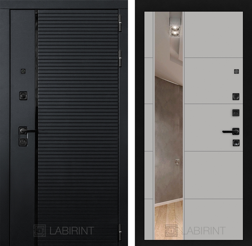 Входная стальная дверь Лабиринт PIANO с зеркалом 19 - Грей софт
