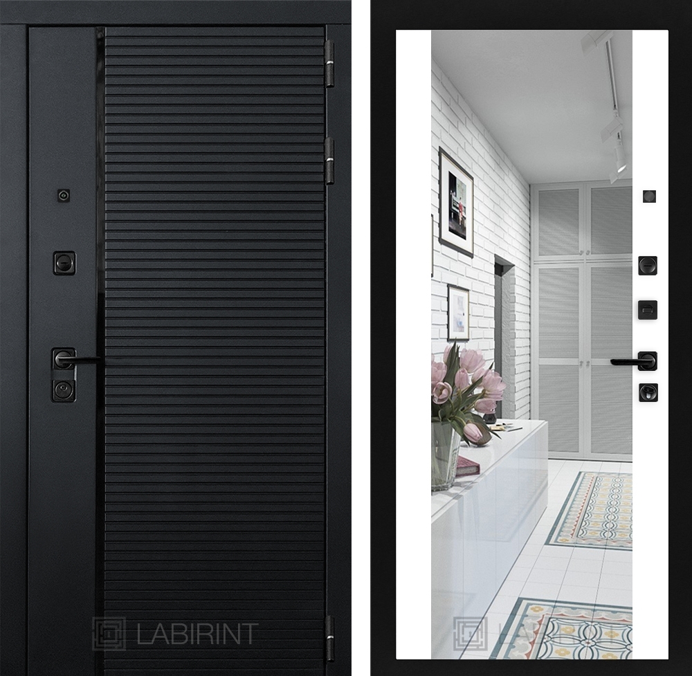 Входная стальная дверь Лабиринт PIANO с зеркалом Максимум - Белый софт