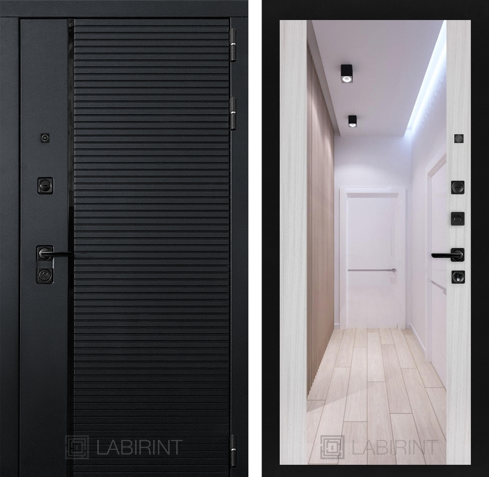 Входная стальная дверь Лабиринт PIANO с зеркалом Максимум - Сандал белый