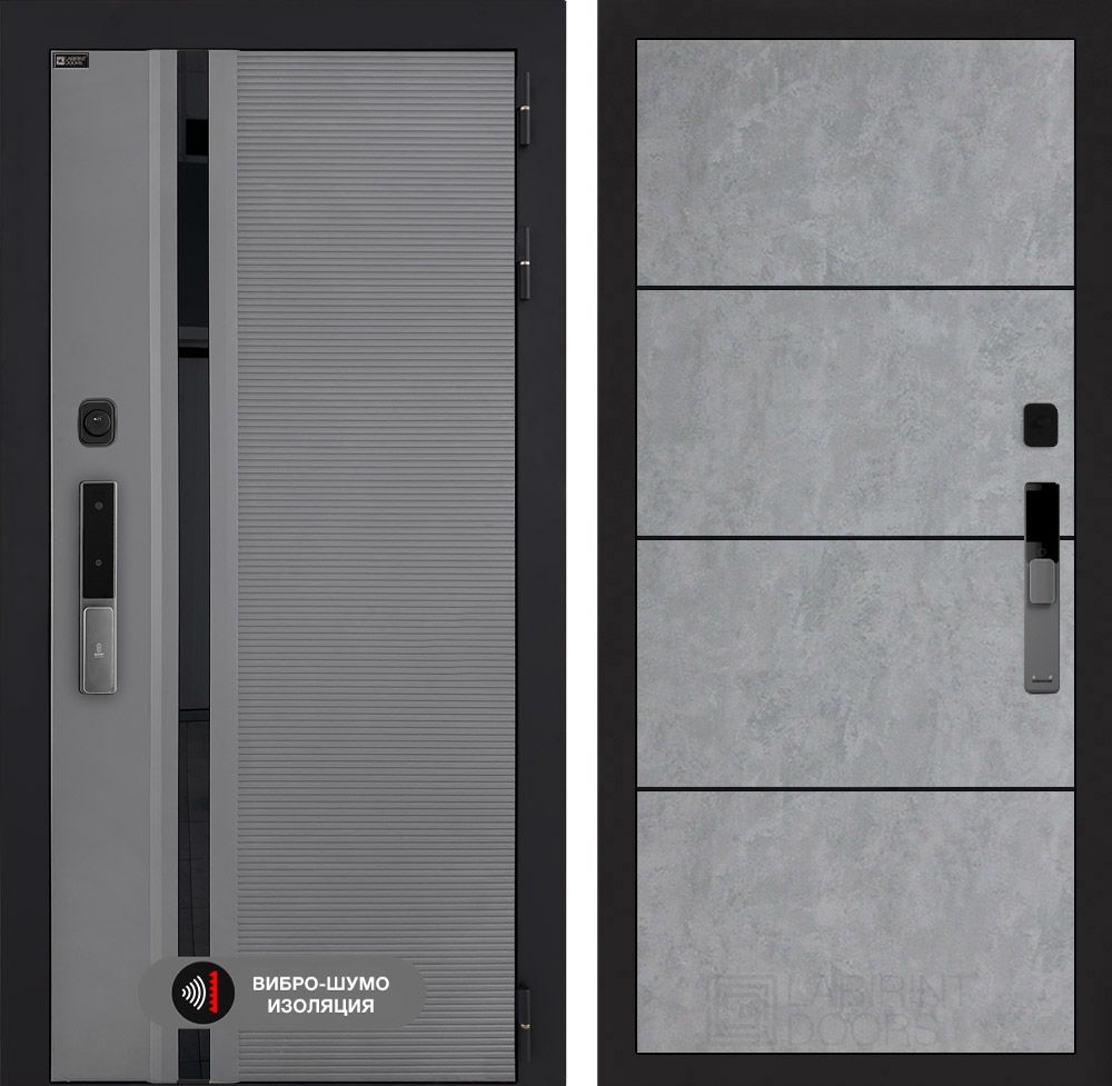 Входная дверь Пиано Смарт 2.0 панель 25 - Бетон светлый, черный молдинг