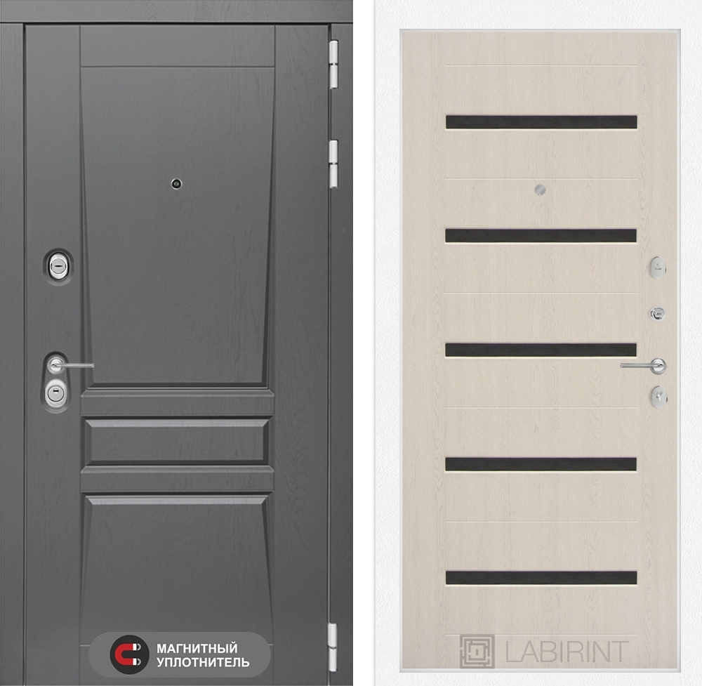 Входная стальная дверь Лабиринт Платинум 01 - Беленый дуб, стекло черное