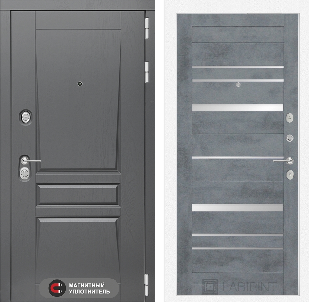 Входная стальная дверь Лабиринт Платинум 20 - Бетон темный, зеркальные вставки