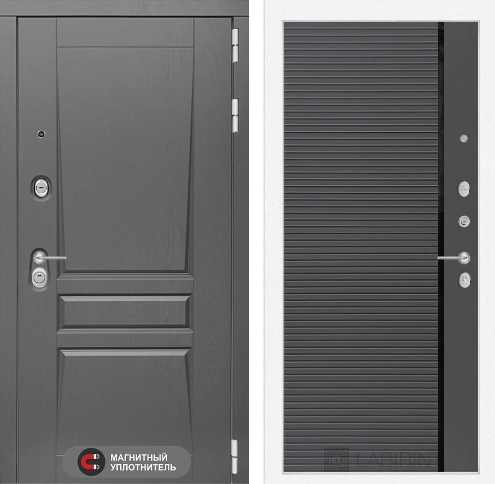 Входная стальная дверь Лабиринт Платинум 22 - Графит софт, черная вставка