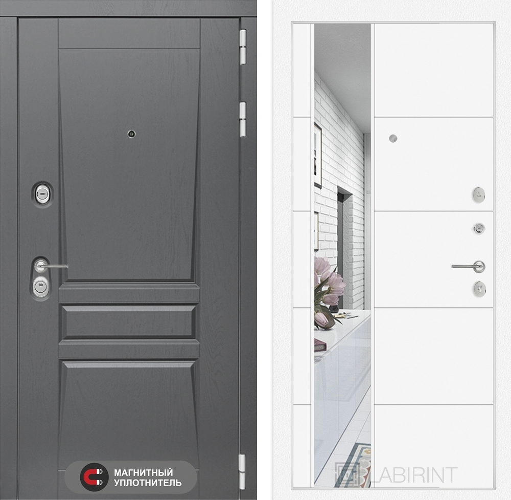 Входная стальная дверь Лабиринт Платинум с Зеркалом 19 - Белый софт