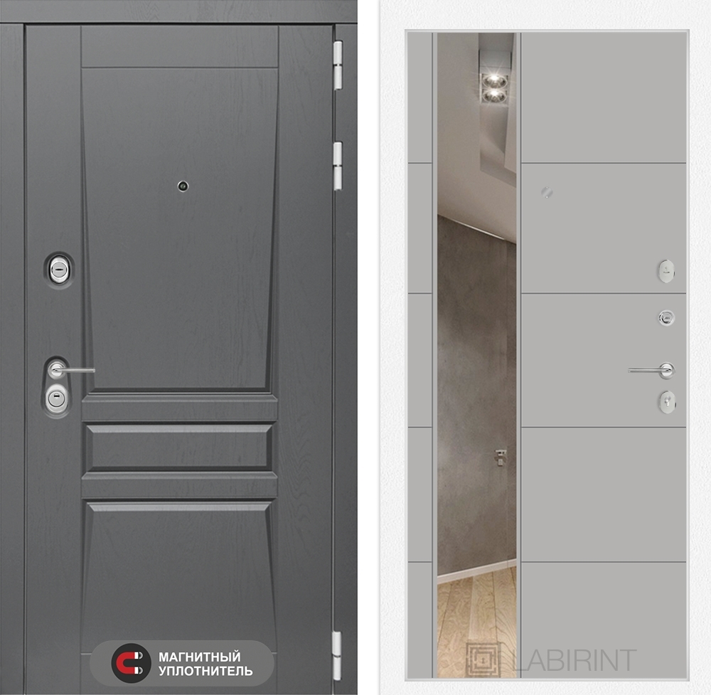 Входная стальная дверь Лабиринт Платинум с Зеркалом 19 - Грей софт