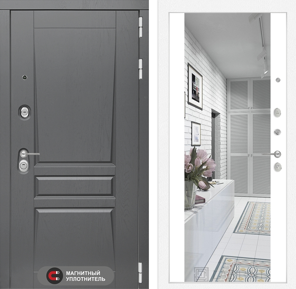 Входная стальная дверь Лабиринт Платинум с Зеркалом Максимум - Белый софт
