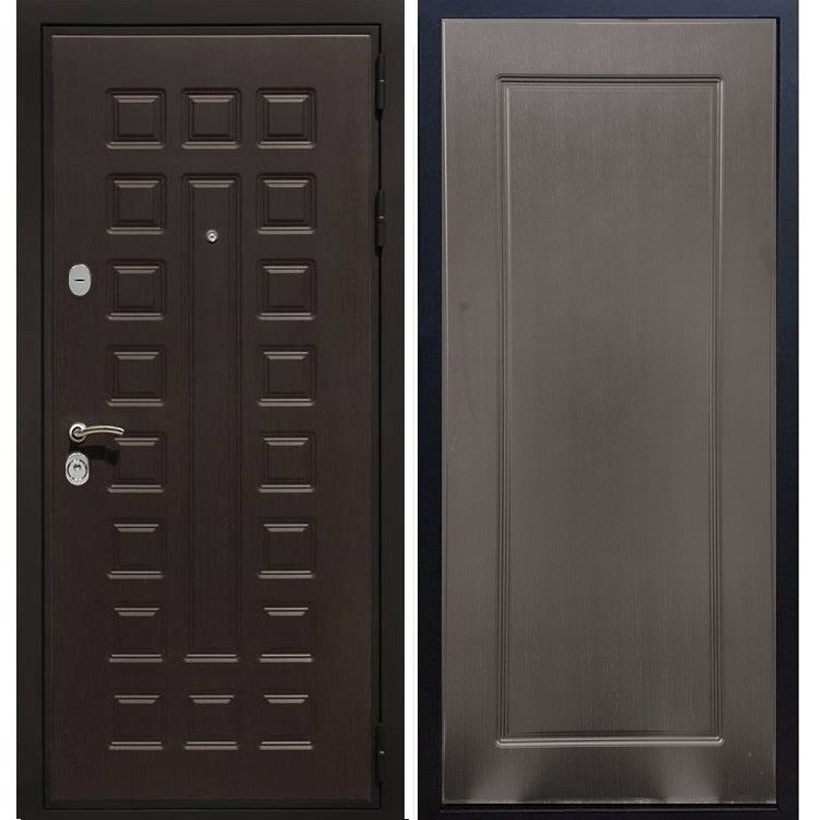 В комплект двери входит - Полотно + короб, декоративная панель с двух сторон, 2 - замка, личинка, ручки, декоративные накладки.