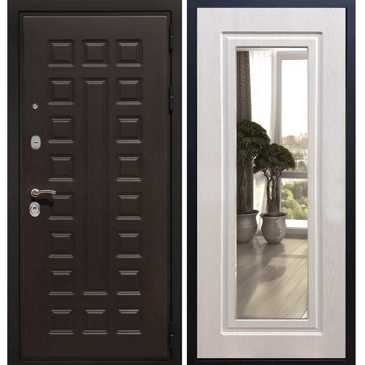 Входная стальная дверь Премиум 3к ФЛ-120 с Зеркалом Лиственница беж