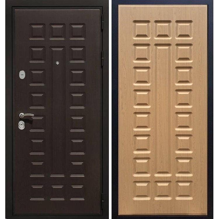 В комплект двери входит - Полотно + короб, декоративная панель с двух сторон, 2 - замка, личинка, ручки, декоративные накладки.