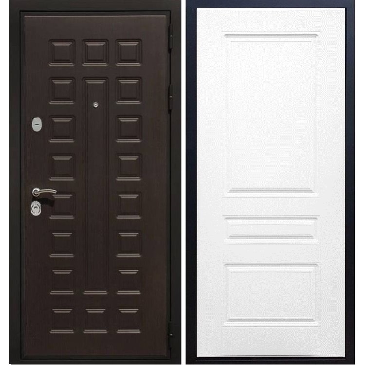 В комплект двери входит - Полотно + короб, декоративная панель с двух сторон, 2 - замка, личинка, ручки, декоративные накладки.