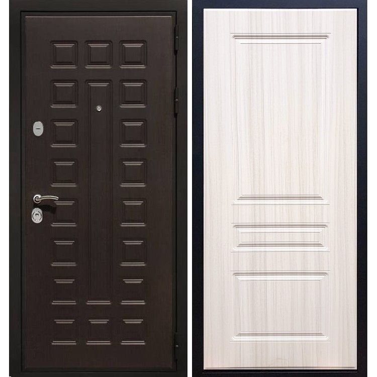 В комплект двери входит - Полотно + короб, декоративная панель с двух сторон, 2 - замка, личинка, ручки, декоративные накладки.