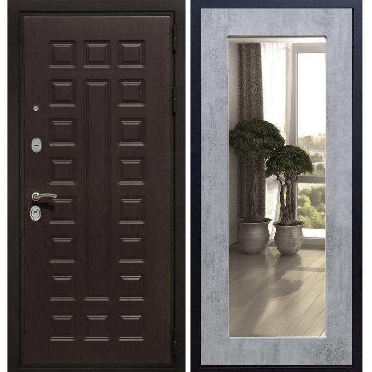 Входная стальная дверь Премиум 3к Пастораль Бетон тёмный с Зеркалом