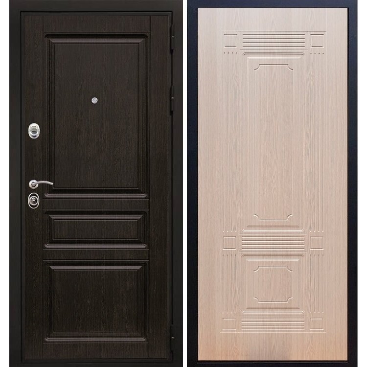 В комплект двери входит - Полотно + короб, декоративная панель с двух сторон, 2 - замка, личинка, ручки, декоративные накладки.