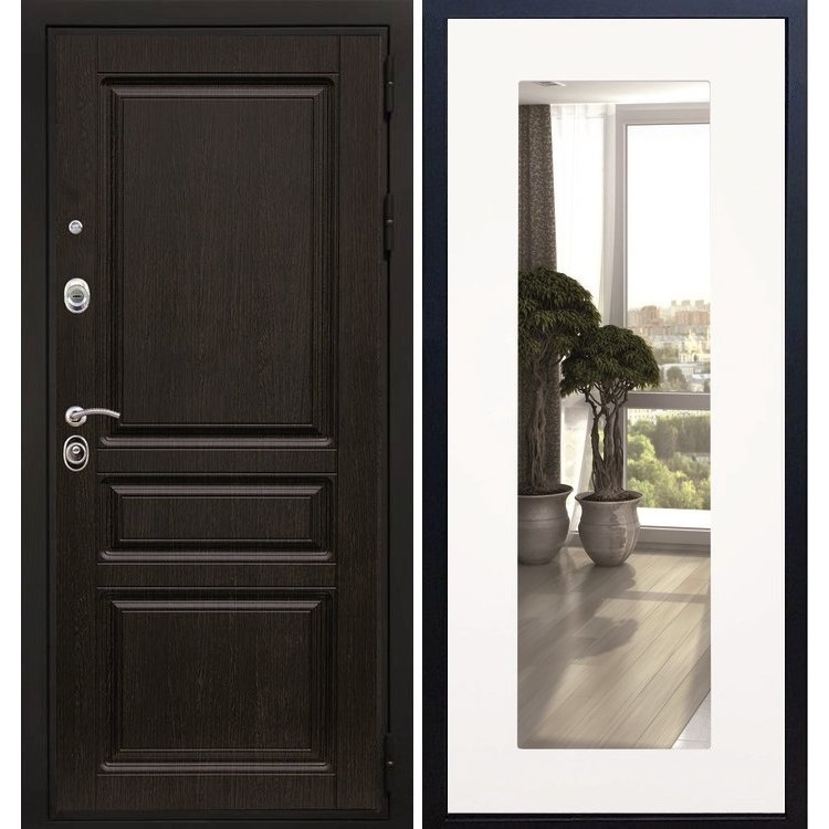 Входная стальная дверь Премиум -H Пастораль Белый силк сноу с Зеркалом