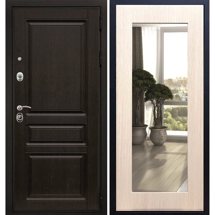 Входная стальная дверь Премиум -H Пастораль Дуб белёный с Зеркалом