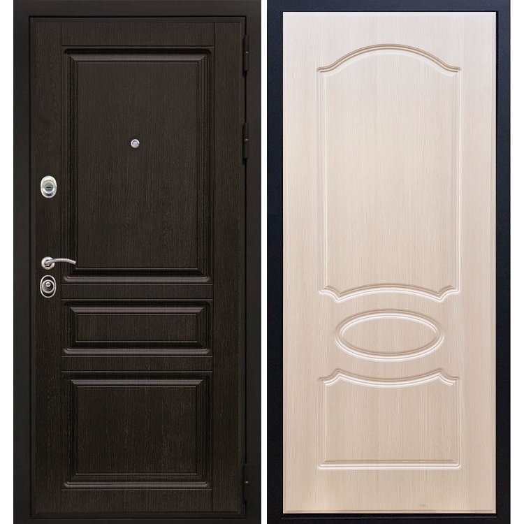 В комплект двери входит - Полотно + короб, декоративная панель с двух сторон, 2 - замка, личинка, ручки, декоративные накладки.