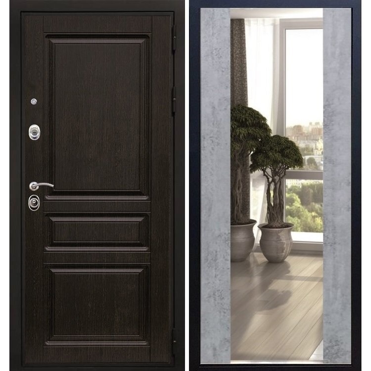 Входная стальная дверь Премиум Н с Зеркалом СБ -16 Бетон темный