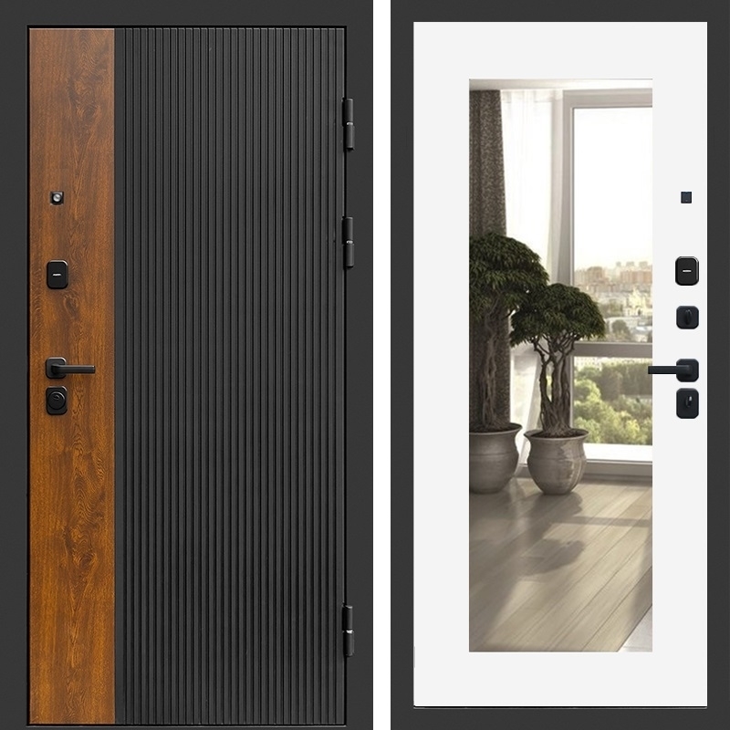 Входная стальная дверь Престиж black фл-251 с зеркалом Белый софт