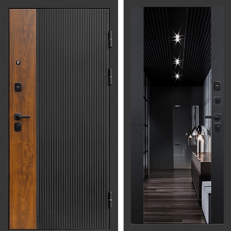 Входная стальная дверь Престиж black фл-252 с зеркалом Черный кварц