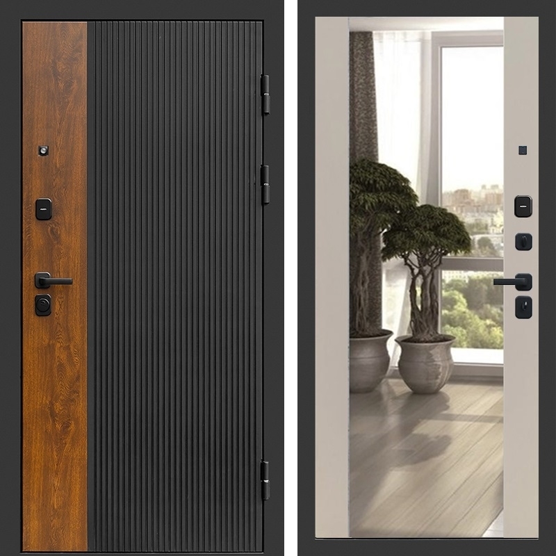 Входная стальная дверь Престиж black фл-252 с зеркалом Слоновая кость