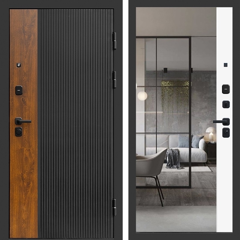 Входная дверь Престиж black с зеркалом фацет Белый софт