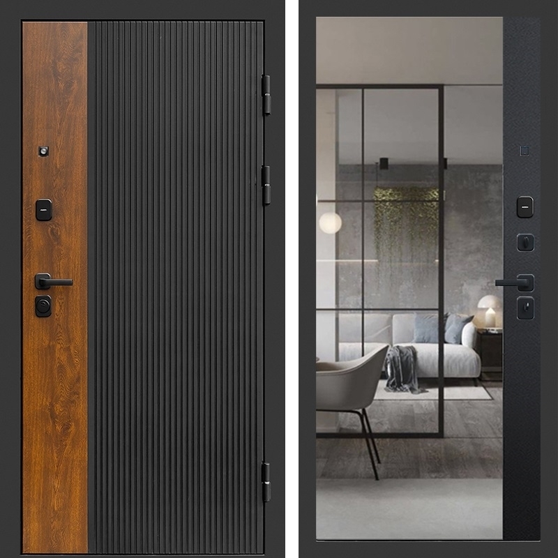 Входная дверь Престиж black с зеркалом фацет Черный кварц