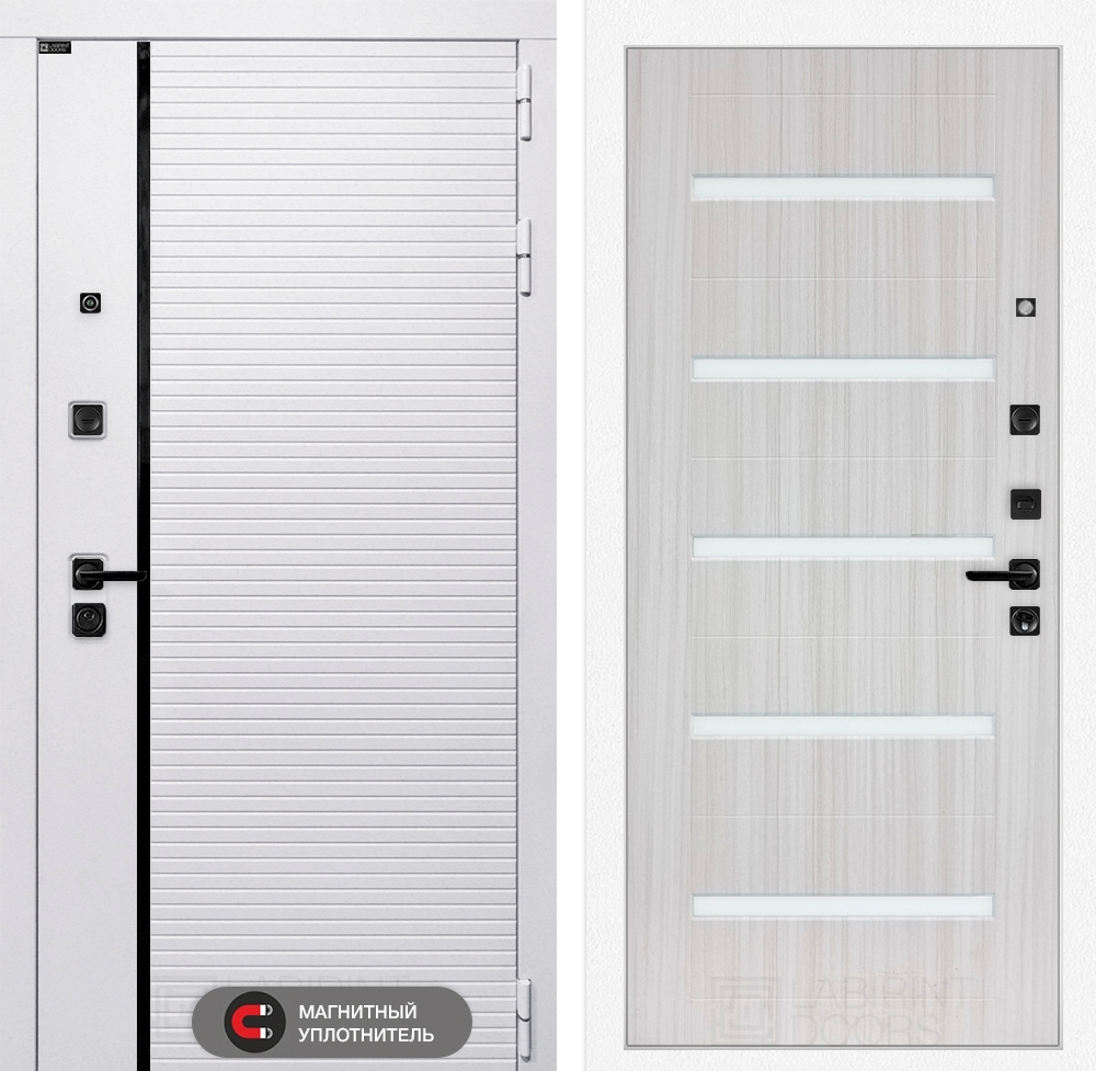 Входная белая дверь Лабиринт ROYAL 01 - Сандал белый, стекло белое