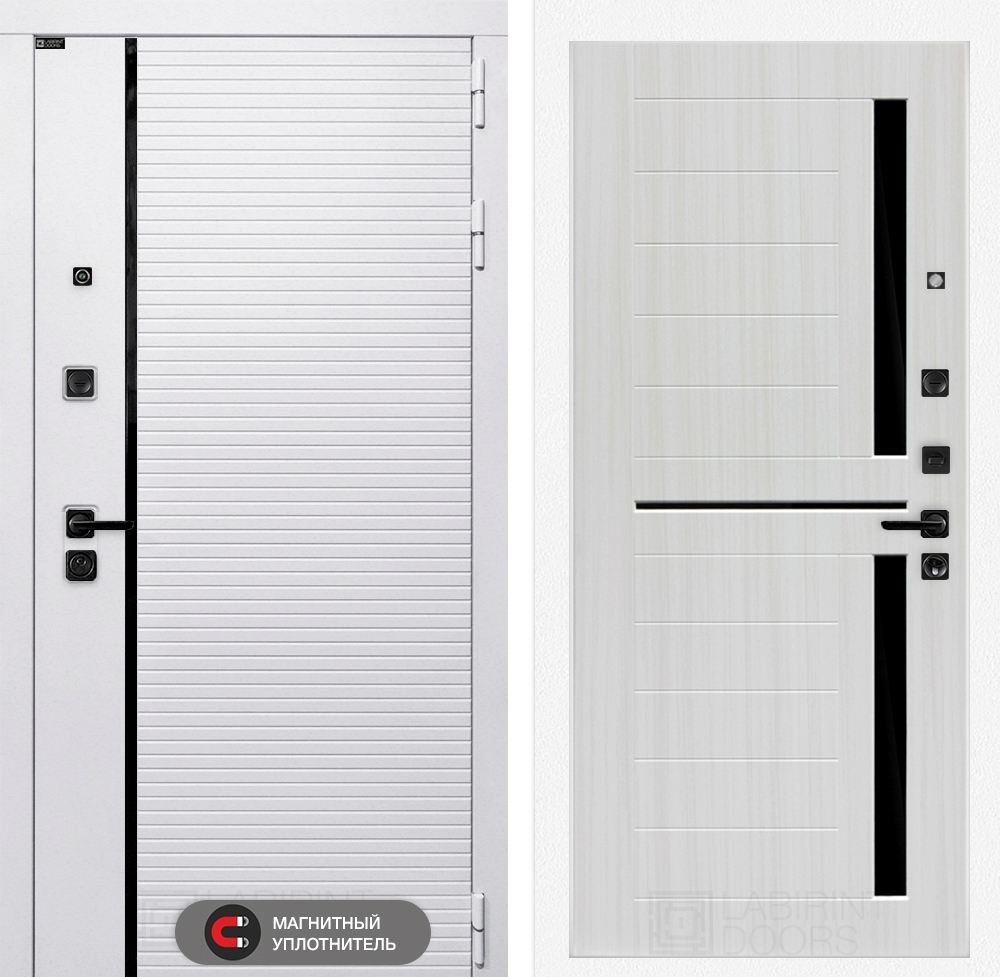 Входная белая дверь Лабиринт ROYAL 02 - Сандал белый, стекло черное