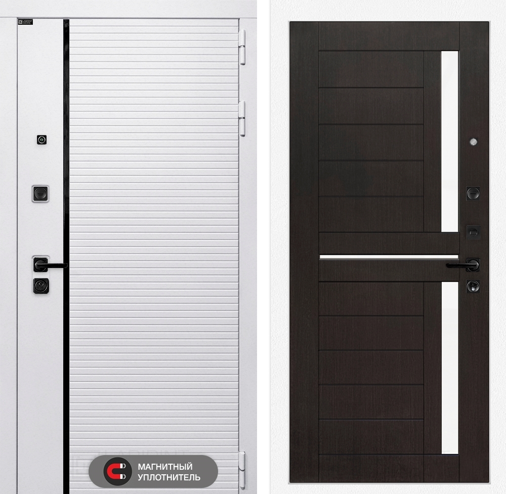 Входная белая дверь Лабиринт ROYAL 02 - Венге, стекло белое