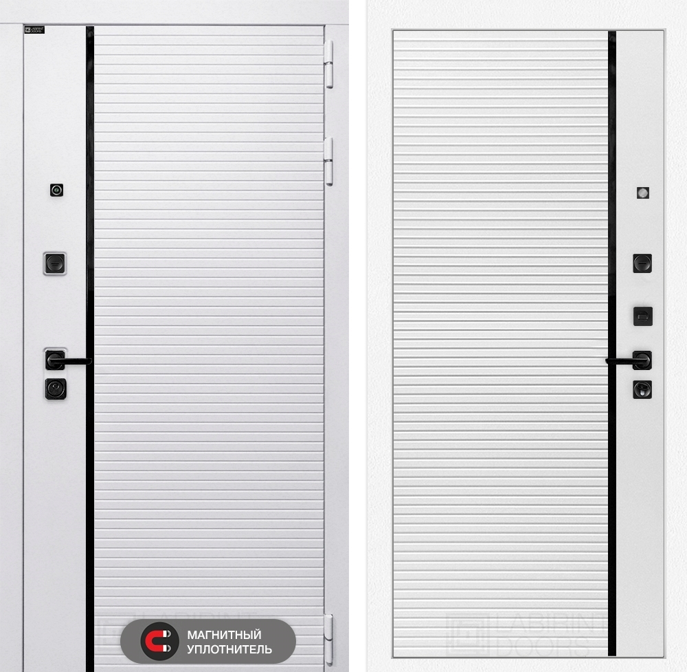 Входная белая дверь Лабиринт ROYAL 22 - Белый софт, черная вставка