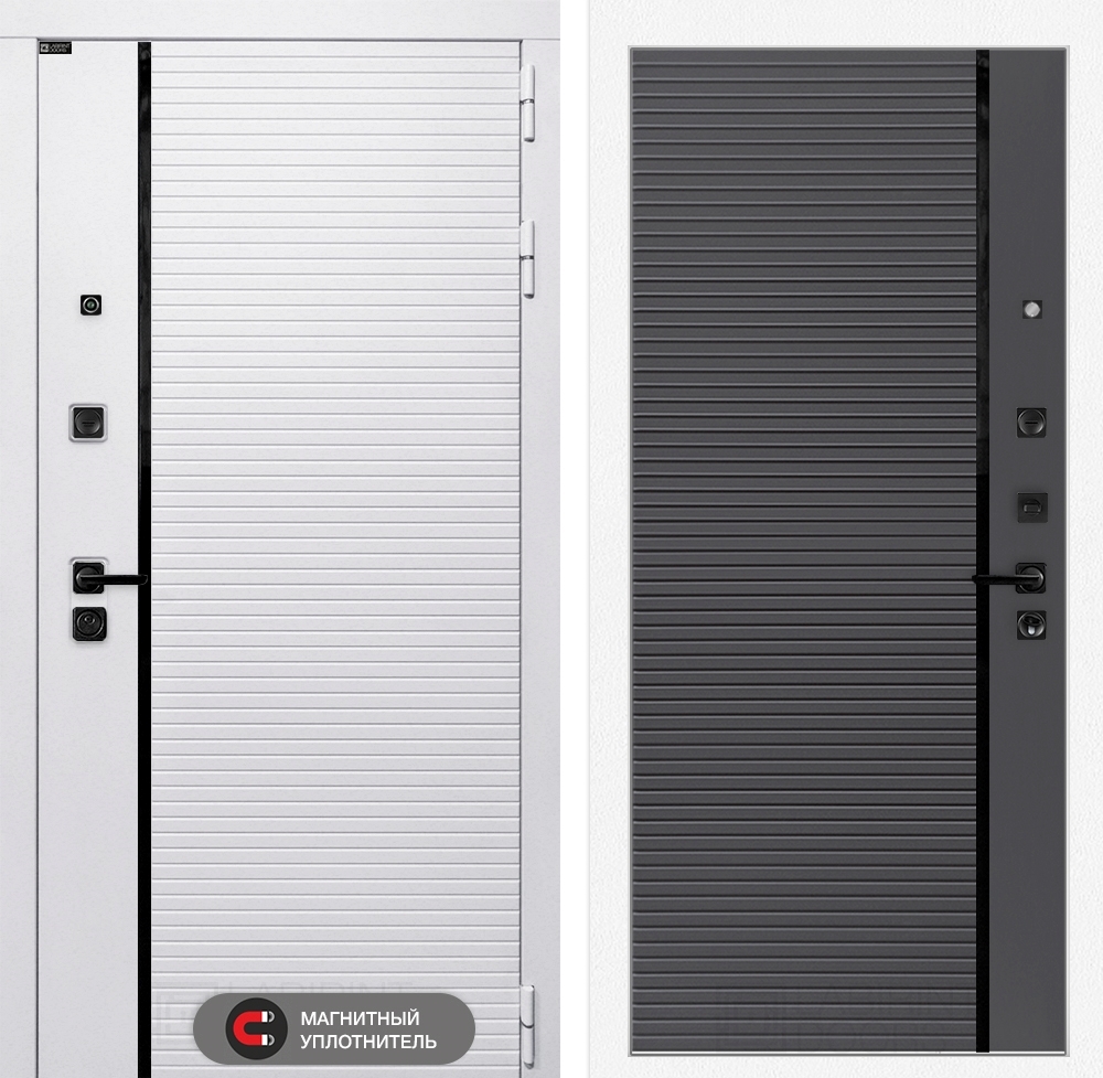 Входная белая дверь Лабиринт ROYAL 22 - Графит софт, черная вставка