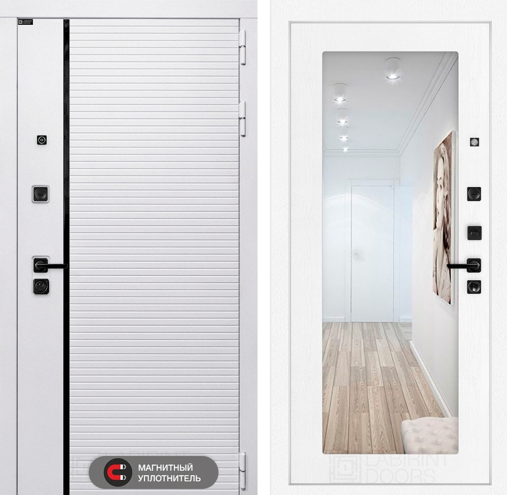 Входная белая дверь Лабиринт ROYAL с зеркалом 18 - Белое дерево