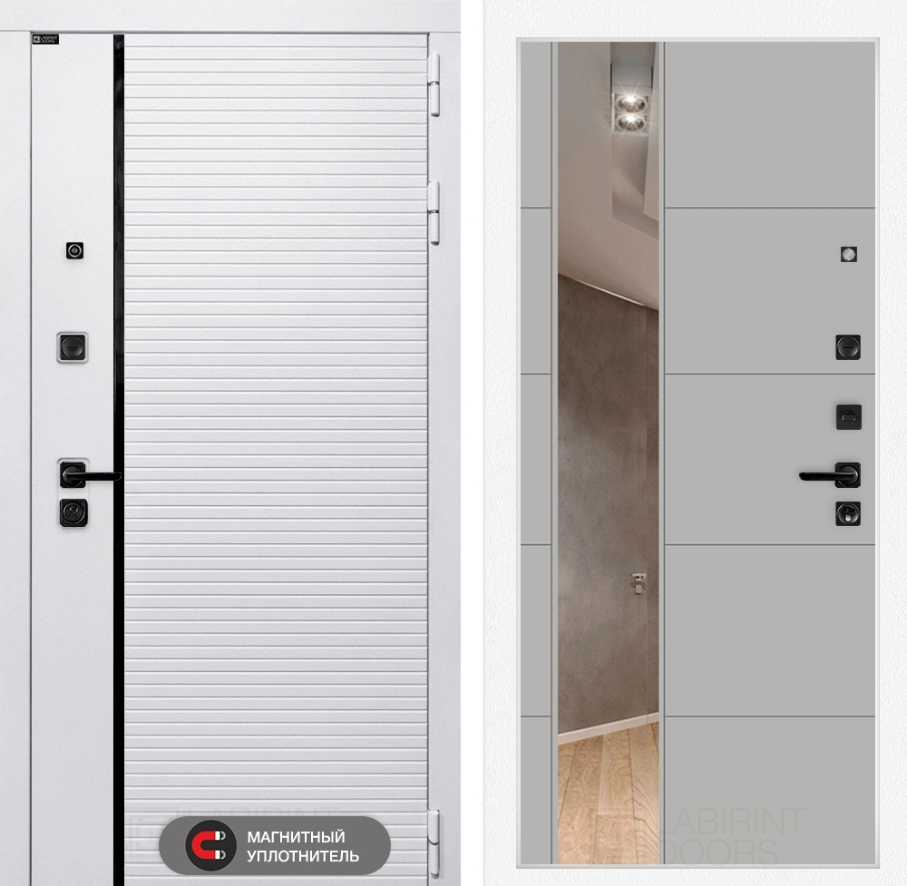 Входная белая дверь Лабиринт ROYAL с зеркалом 19 - Грей софт