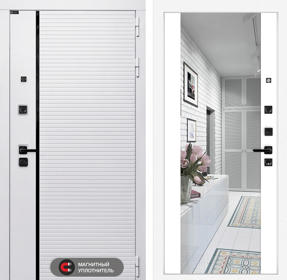 Входная белая дверь Лабиринт ROYAL с зеркалом Максимум - Белый софт
