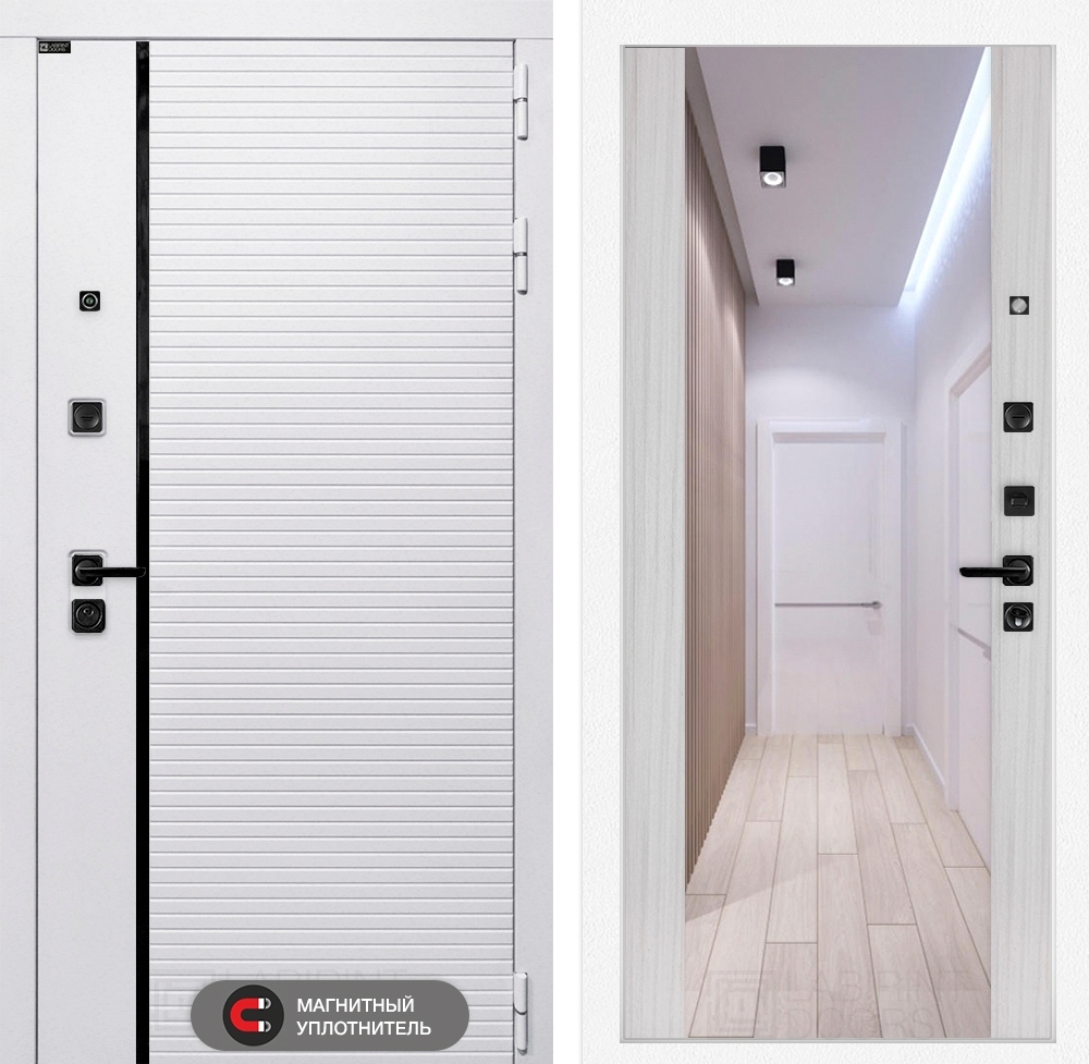 Входная белая дверь Лабиринт ROYAL с зеркалом Максимум - Сандал белый