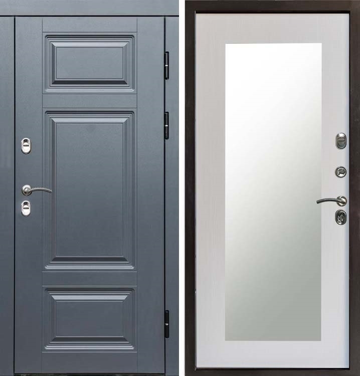 Входная стальная дверь с терморазрывом Интерма Триумф с зеркалом Лиственница
