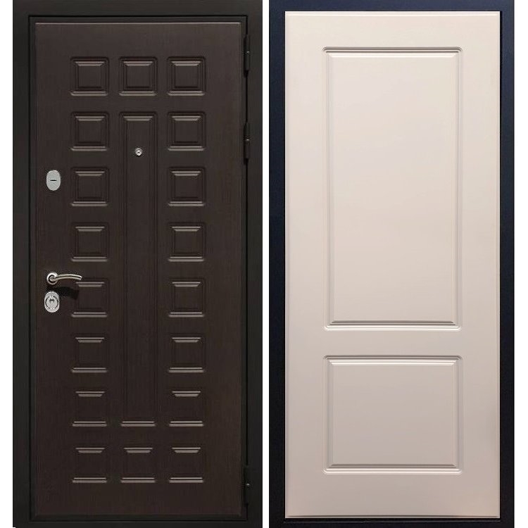 В комплект двери входит - Полотно + короб, декоративная панель с двух сторон, 2 - замка, личинка, ручки, декоративные накладки.