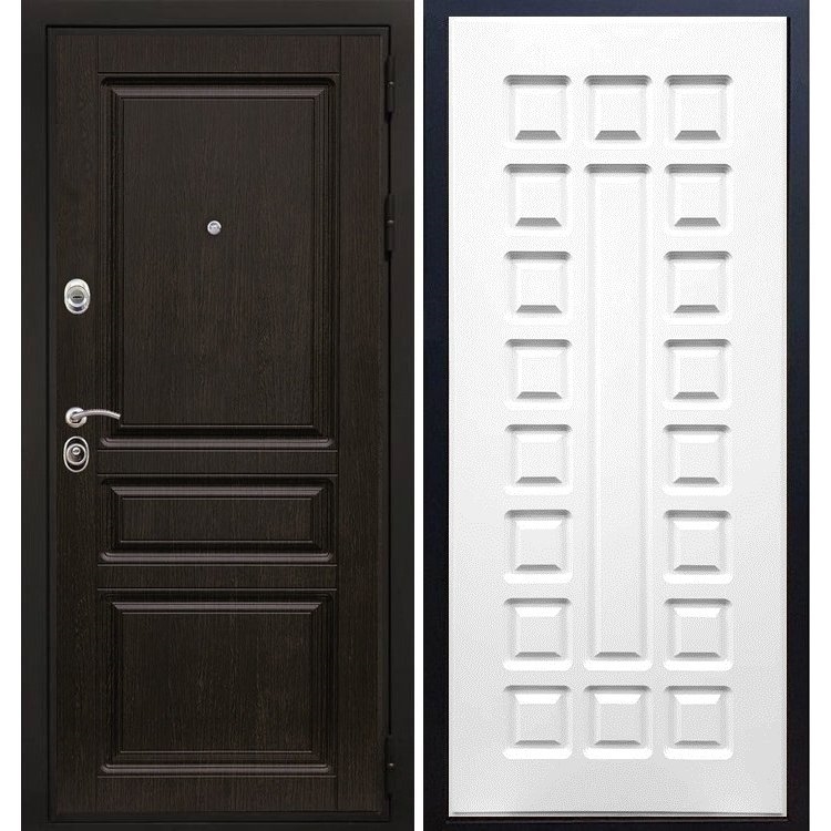 В комплект двери входит - Полотно + короб, декоративная панель с двух сторон, 2 - замка, личинка, ручки, декоративные накладки.