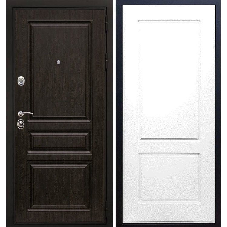 В комплект двери входит - Полотно + короб, декоративная панель с двух сторон, 2 - замка, личинка, ручки, декоративные накладки.