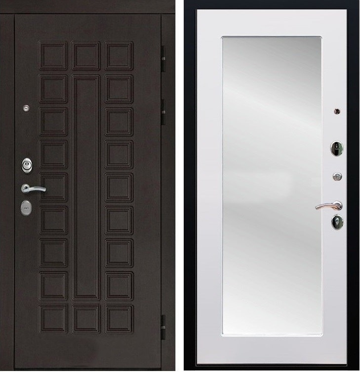 Входная стальная дверь Сенатор СБ-121 с Зеркалом Белый силк сноу