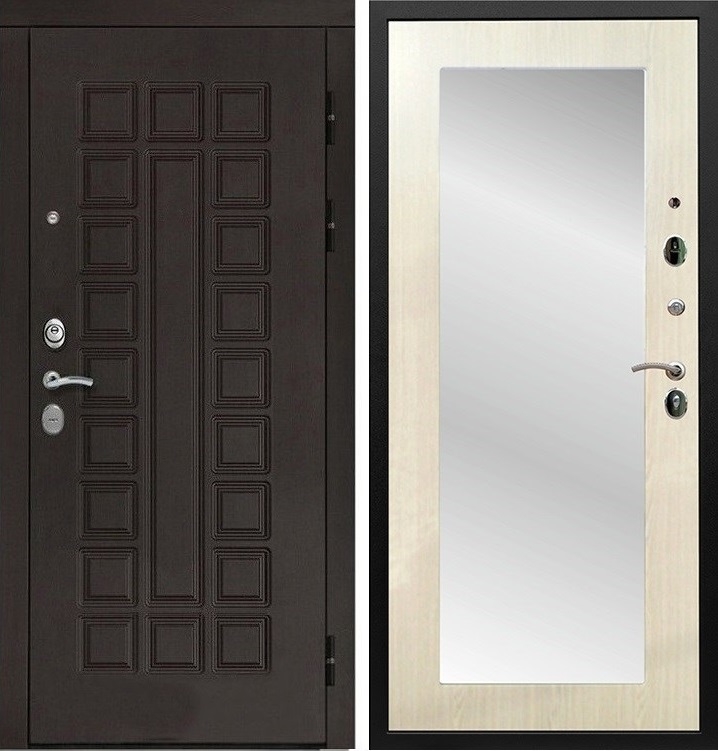 Входная стальная дверь Сенатор СБ-121 с Зеркалом Лиственница беж