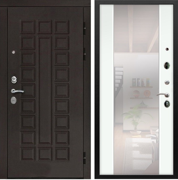 Входная стальная дверь Сенатор СБ-16 с Зеркалом Белый ясень
