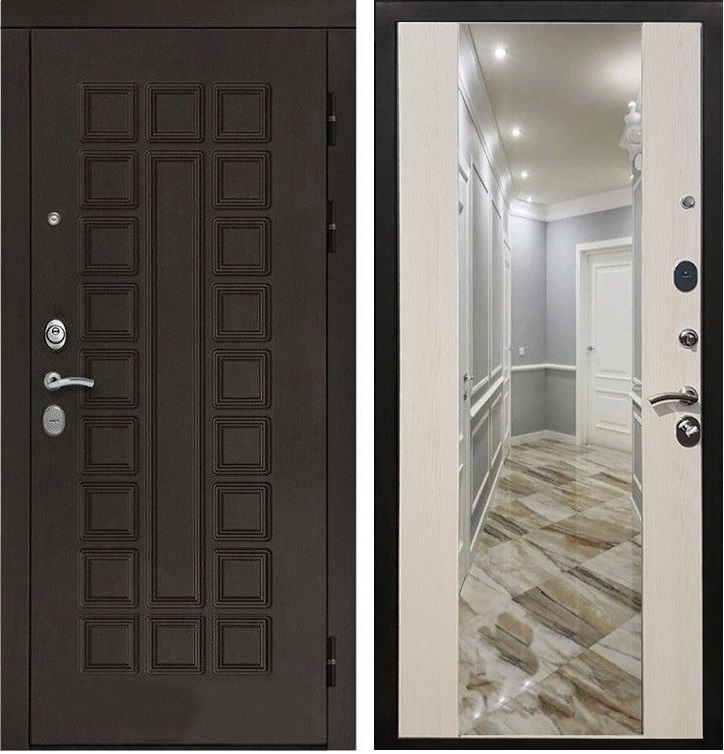 Входная стальная дверь Сенатор СБ-16 с Зеркалом Лиственница беж