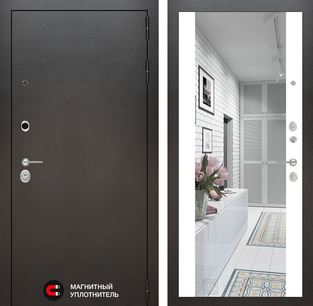 Входная стальная дверь Лабиринт SILVER с Зеркалом Максимум - Белый софт