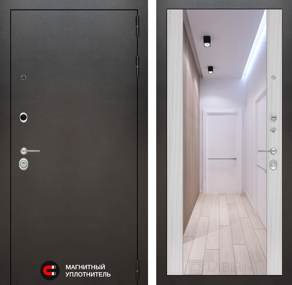 Входная стальная дверь Лабиринт SILVER с Зеркалом Максимум - Сандал белый