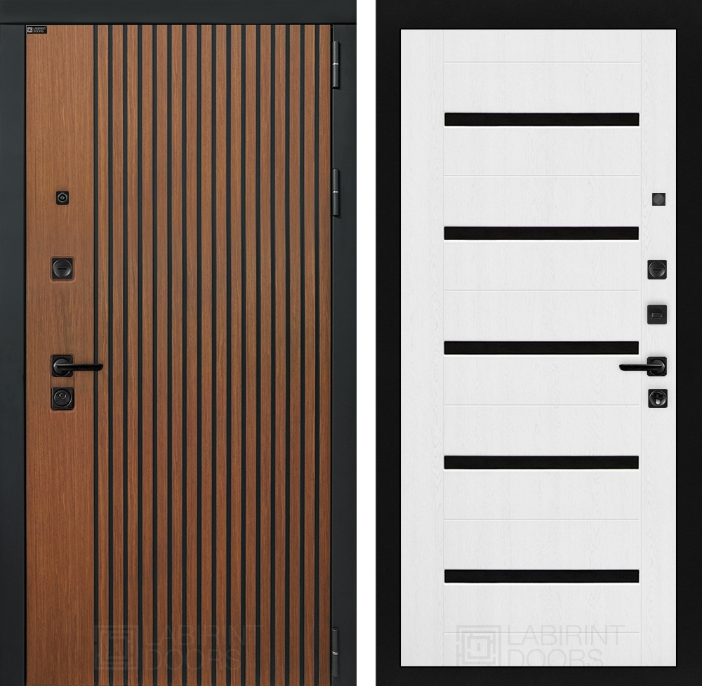 Входная стальная дверь Лабиринт STORM 01 - Белое дерево, стекло черное