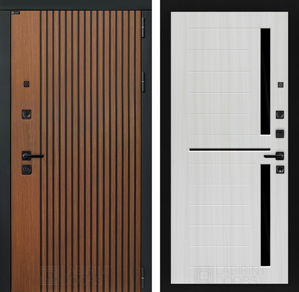 Входная стальная дверь Лабиринт STORM 02 - Сандал белый, стекло черное