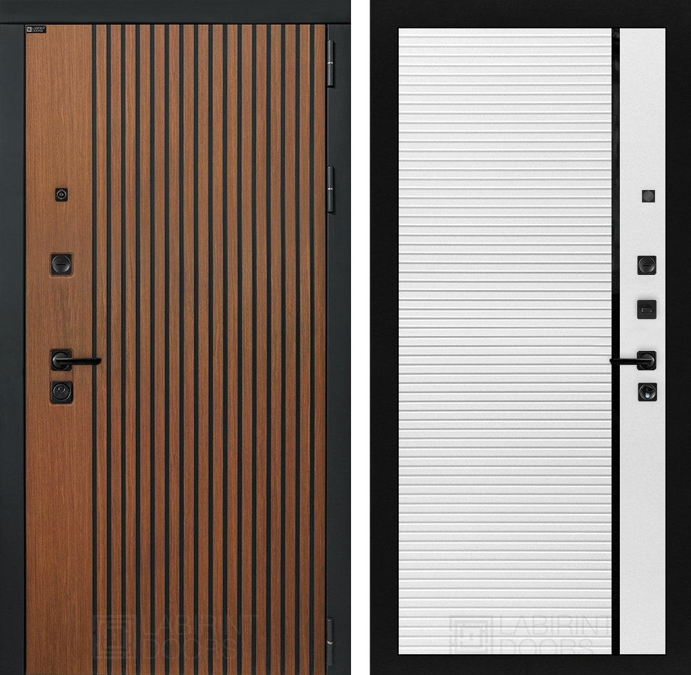 Входная стальная дверь Лабиринт STORM 22 - Белый софт, черная вставка