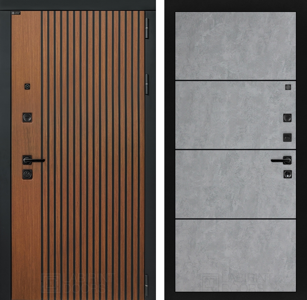 Входная стальная дверь Лабиринт STORM 25 - Бетон светлый, черный молдинг
